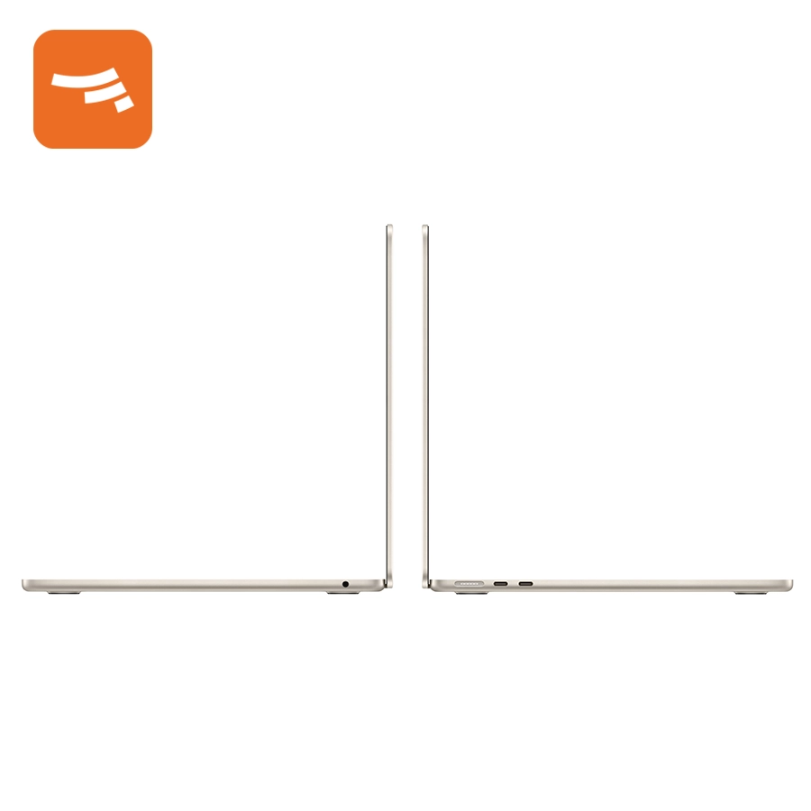 MacBook Air جدید مجهز به پنل Liquid Retina با وضوح 2560×1664 و پشتیبانی از ۱ میلیارد رنگ است که رنگها را زنده و دقیق نمایش میدهد. همچنین ضخامت بدنه بسیار کم و وزن سبک (حدود ۱٫۲۴ کیلوگرم) باعث شده این لپتاپ در دسته سبکوزنهای قدرتمند قرار بگیرد.